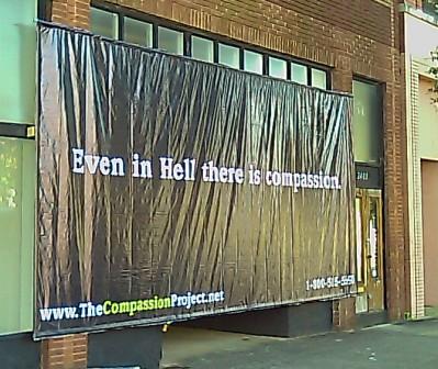While I strongly disagree with the message of the Compassion Project, they have every right to display it. Likewise, Christians have every right to talk about what we believe. If we truly, believe that Christ is the answer, we must not wait within the walls of the Church building in hopes that seekers will find us. Instead, it seems to me, we should get out in the marketplace and begin to participate in these spiritual discussions.